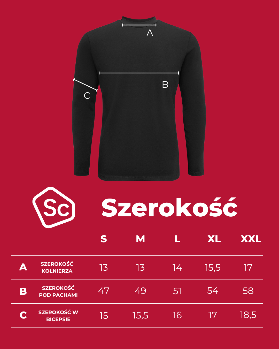Ze względu na tolerancje pomiarów oraz właściwości elastycznego materiału, finalne wymiary koszulki mogą delikatnie odbiegać od tych w tabeli.